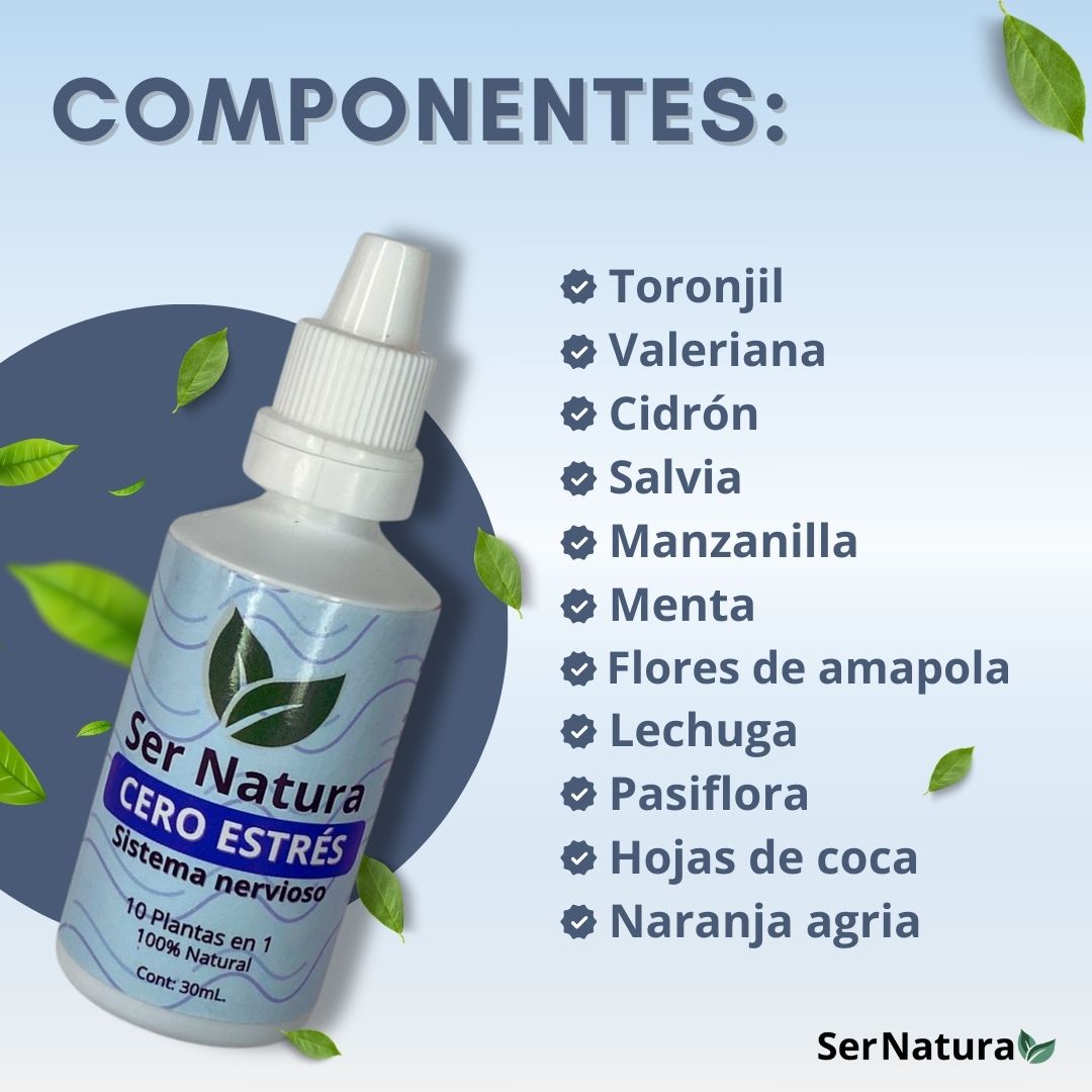 Deshazte del estrés y la ansiedad -Cero Estrés esta formulado especialmente para Relajarte y calmarte naturalmente por sus propiedades tranquilizantes. ayudándote a manejar las alteraciones nerviosas de manera efectiva.